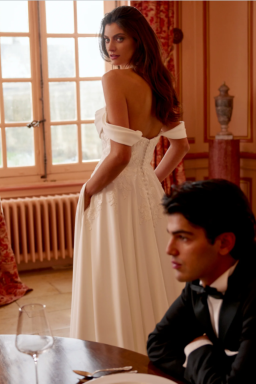 Fancy alittle more drama? Don't worry, for even more of a wow factor you can add Hope's optional monarch length detatchable train extension! Pair this with matching off the shoulder cuff sleeves for the ultimate bridal look!